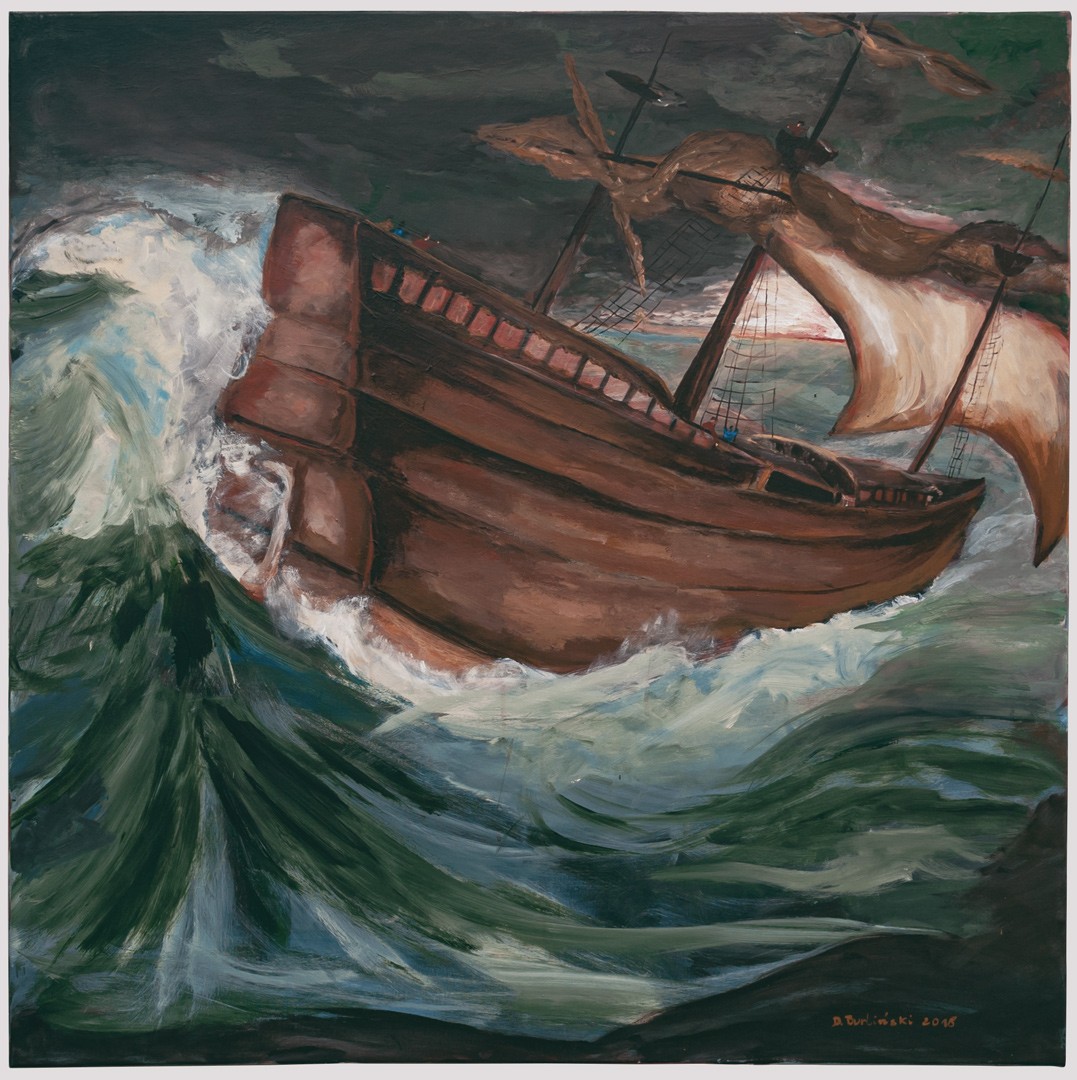 Original, melancholic painting on canvas. The painting Studio of Dominik Burliński, nostalgic character of the painting.